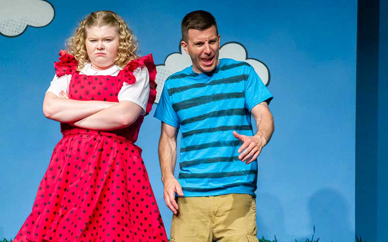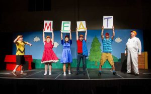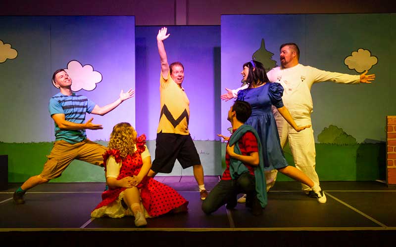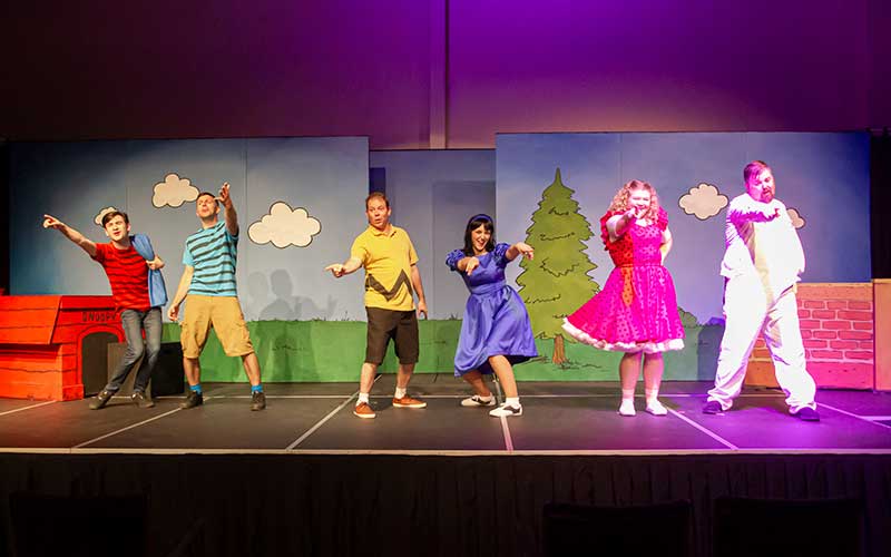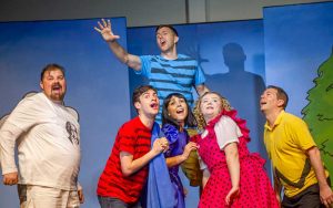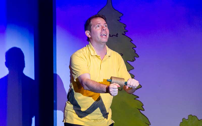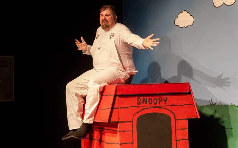 A program note says that the time of the action is “an average day in the life of Charlie Brown”. It really is just that, a day made up of little moments picked from all the days of Charlie Brown, from Valentine’s Day to the baseball season, from wild optimism to utter despair, all mixed in with the lives of his friends (both human and non-human) and strung together on the string of a single day, from bright uncertain morning to hopeful starlit evening.